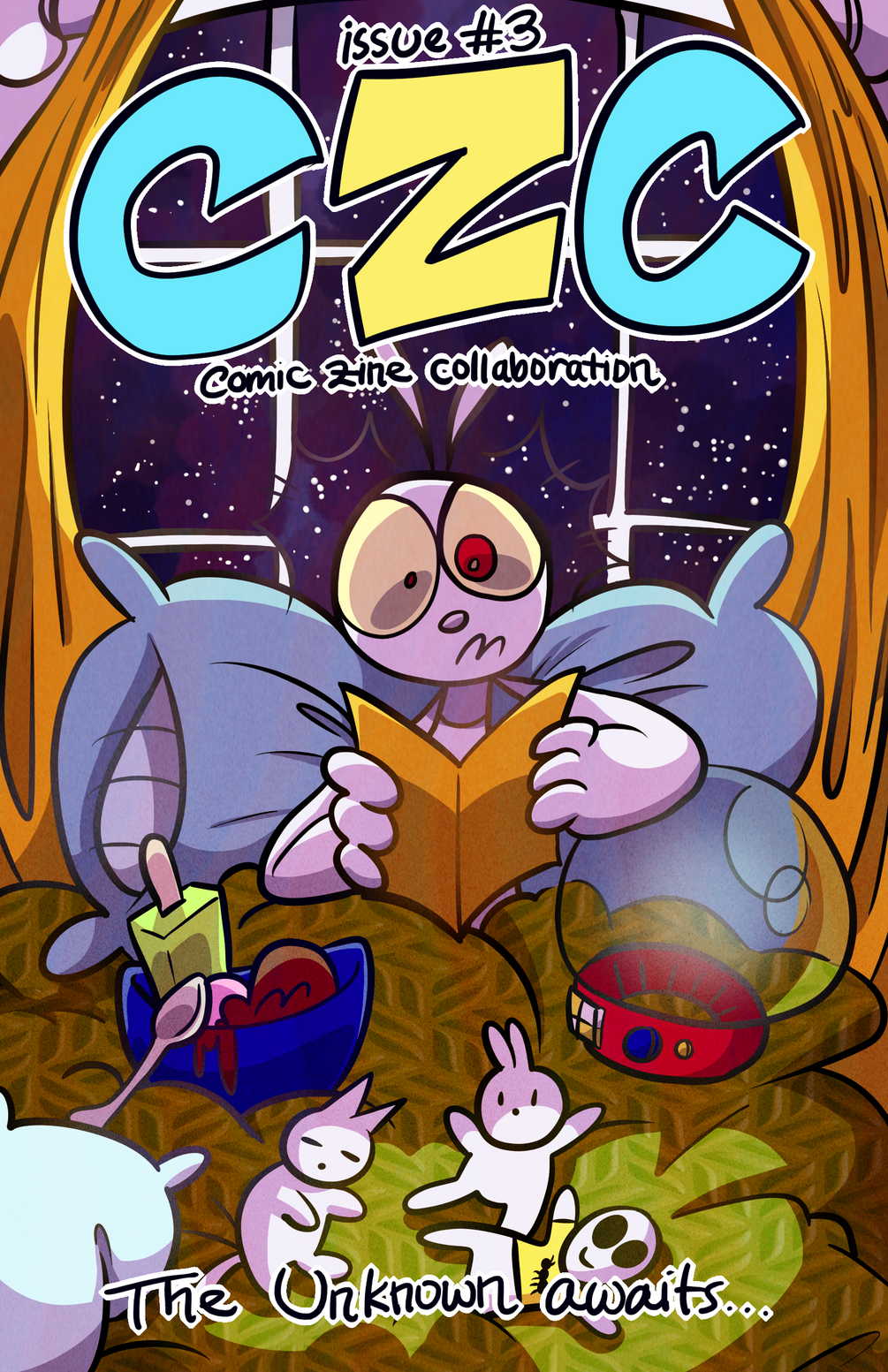CZC stands for Comic Zine Collaboration! There are 11 different artists participating in this zine, each creating their own unique comic. This issue's theme is the Unknown.